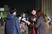 初のJ1昇格を目前に控えた、サッカーJ2の水戸ホーリーホックが11月14日、号外チラシをJR水戸駅、勝田駅、日立駅で配布した。