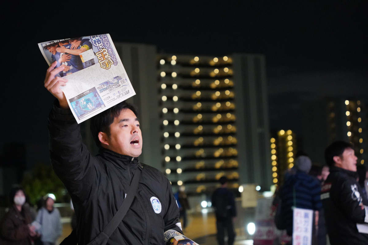 水戸ホーリーホックの初J1昇格チャンスをPRする水戸ホーリーホックスタッフ