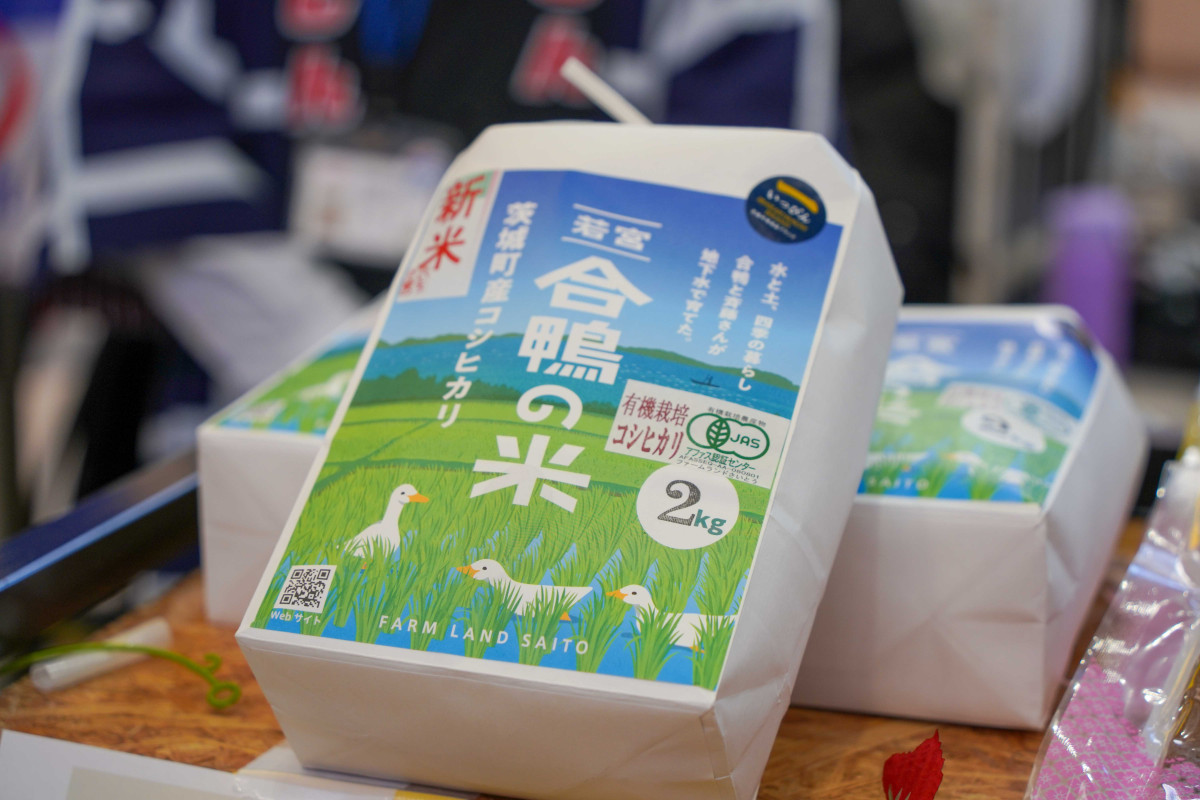 茨城町特産品ブランドいっぴんの「合鴨の米」なども並んだ