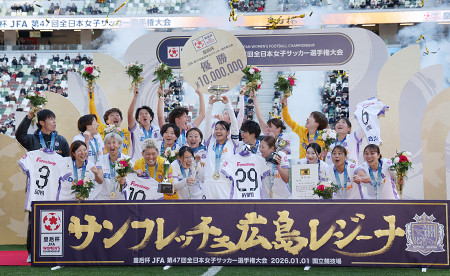 サッカーの第47回皇后杯全日本女子選手権は1日、東京・MUFGスタジアム(国立競技場)でWEリーグ勢による決勝が行われ、広島がINAC神戸に2―1で競り勝ち、初優勝を果たした。 【時事通信社】
