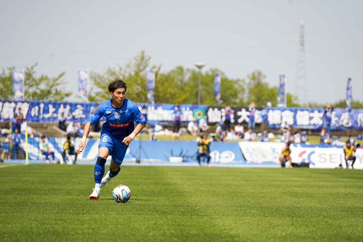 ボールを運ぶ飯田貴敬選手