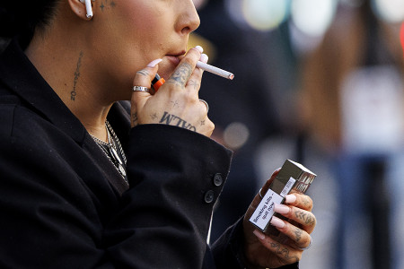 英国で23日までに、2009年1月1日以降に生まれた人にたばこの販売を禁じる法案が上下両院を通過した。写真は23日、ロンドンでたばこを吸う市民。 【EPA時事】