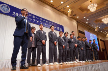 水戸ホーリーホックの広報担当者によると、この日は過去最多となる約600人が来場。昨シーズンのJ2優勝シャーレが飾られた会場で、選手・スタッフが出席した。1月10日に新加入が発表されたブラジル人選手のダニーロ選手や、全国高校サッカー選手権に出場した流通経済大柏高校出身の安藤晃希選手、島谷義進選手も出席した。