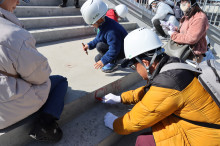 見学後、参加者は屋外デッキ階段となる場所に思い思いのメッセージを書いた。書いた言葉は残したまま加工を施し、施設の一部となる。