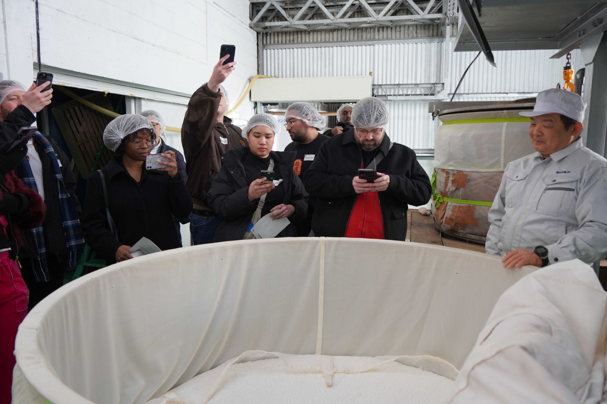 酒造りの工程について説明を受ける参加者