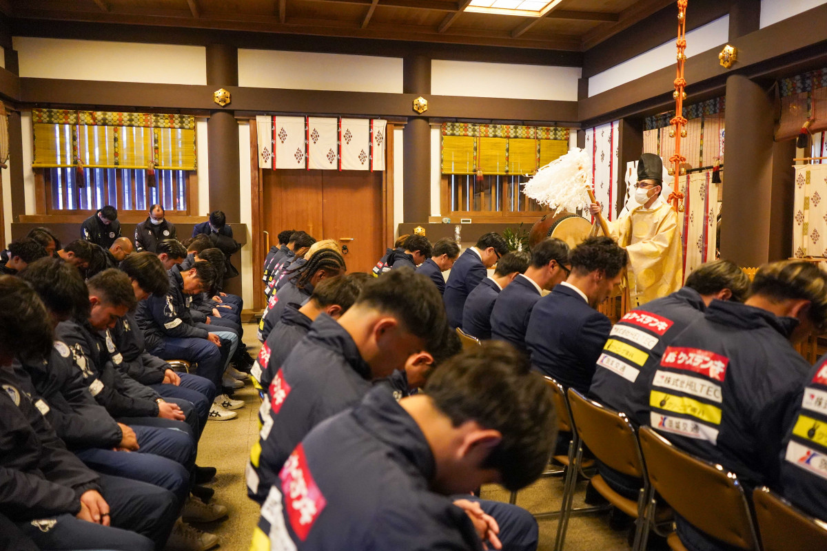 サッカーJ1の水戸ホーリーホックが1月28日、常磐神社(水戸市常磐町)で必勝祈願を行った。