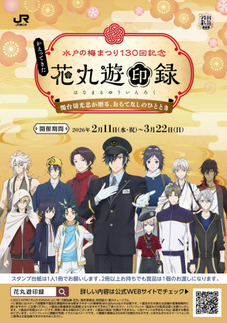 JR東日本水戸支社が2月11日から、アニメ「刀剣乱舞-花丸-」とのタイアップ企画「かえってきた 花丸遊印録~燭台切光忠が贈る、おもてなしのひととき~」を開催する。