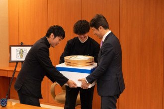 本文を入力してください「常陸乃国まさば」の関係者が12月17日、茨城県庁を訪れ、大井川和彦知事にブランドロゴ披露と「常陸乃国まさば生旨(なまうま)フェア」開催告知を行った。
