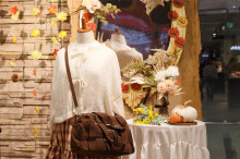 専門学校「文化デザイナー学院」(水戸市泉町)の学生による「秋の装い」をテーマにした展示が現在、水戸駅ビル「エクセル」(水戸市宮町)本館2階の正面入り口で行われている。