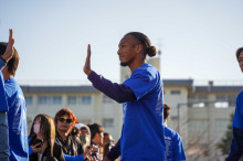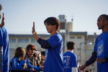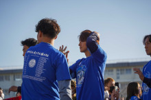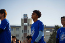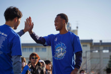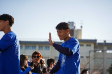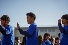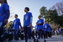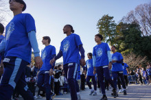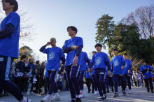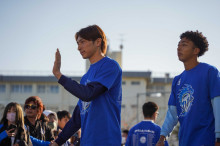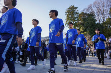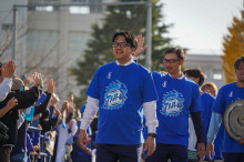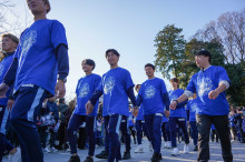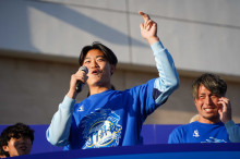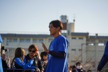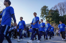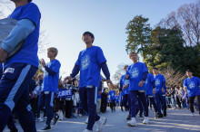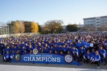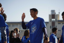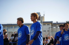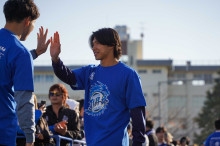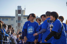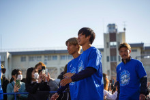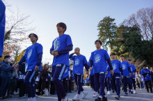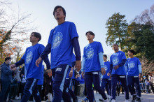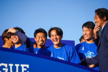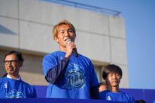 サッカーJ2水戸ホーリーホックが11月30日、水戸市立第二中学校グラウンド(水戸市三の丸)で「2025明治安田J2リーグ優勝報告会」を開いた。