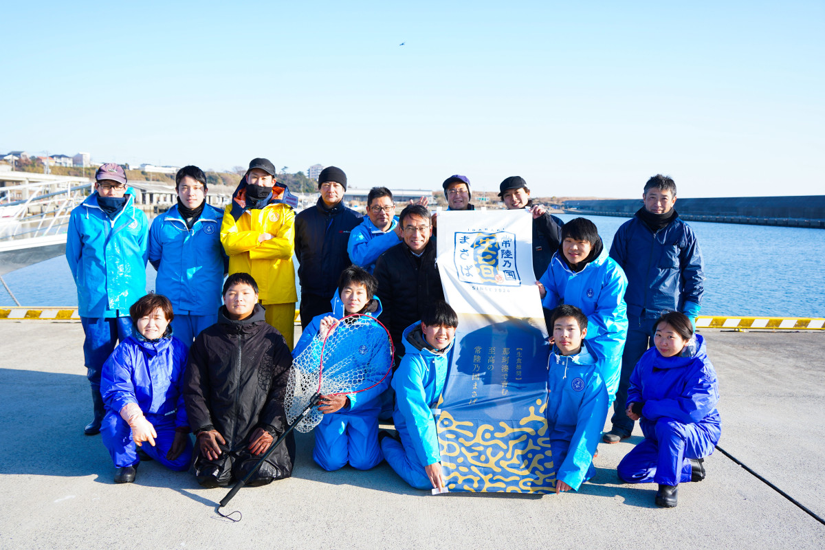 「常陸乃国まさば」養殖に取り組む茨城県農林水産部水産振興課、横浜冷凍、海洋高校水産クラブの生徒などの関係者