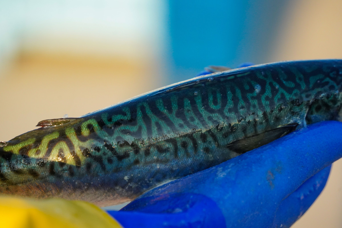 濃い色の模様は養殖のマサバの特徴のひとつ