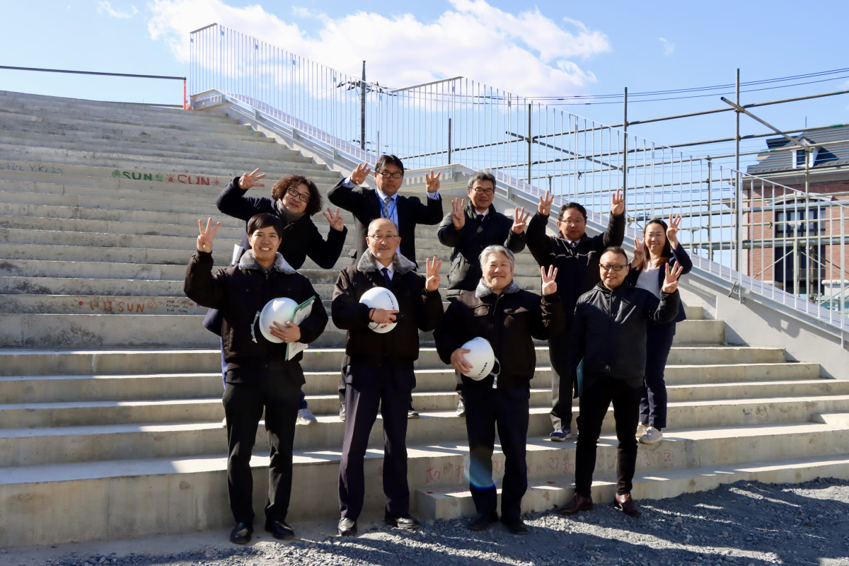 岡田新一設計事務所の皆さん、有門正太郎さん、町文化的施設整備室の皆さん(提供=茨城町)