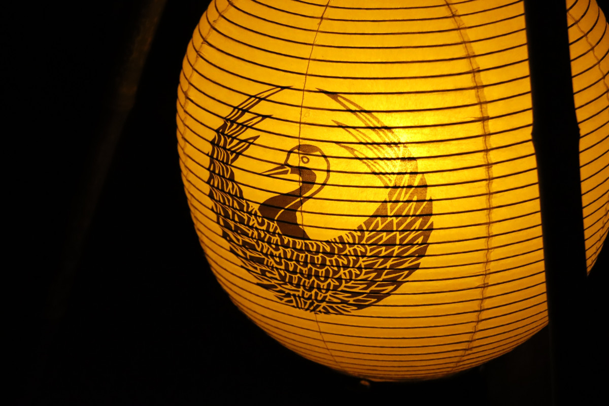 アニメ「刀剣乱舞」の13振りの紋をデザインしたちょうちんの明かり