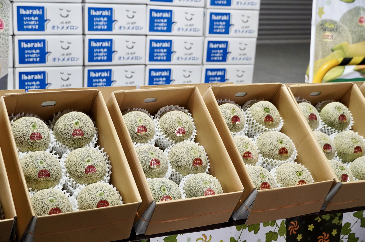 JA水戸茨城町メロン部会が3月25日、城之内集荷所(茨城町城之内)で今季初となる青肉の「オトメメロン」を出荷した。