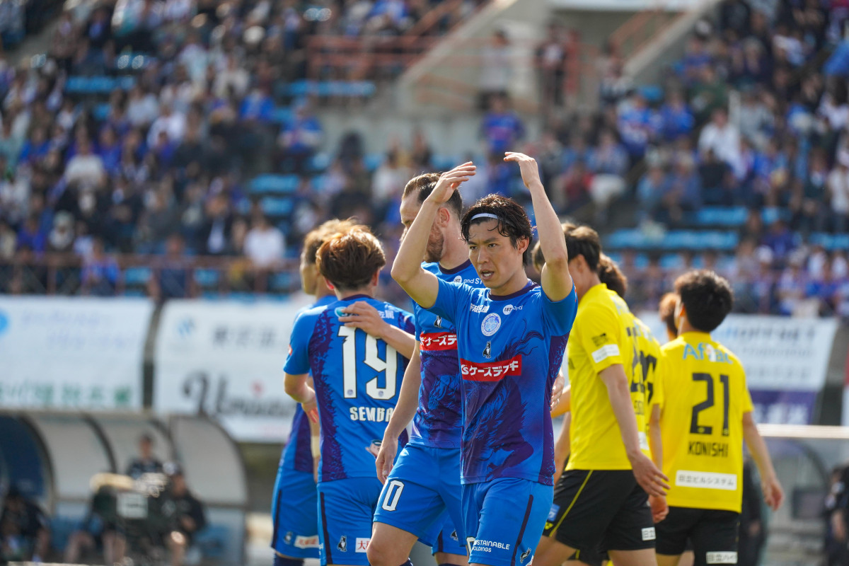 追加点を決め、サポーターを盛り上げる渡邉新太選手