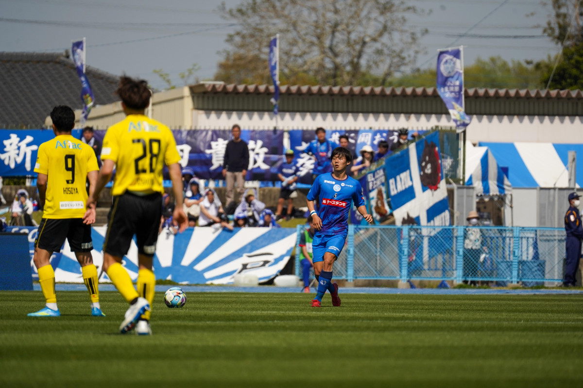 ボールをパスする大崎航詩選手