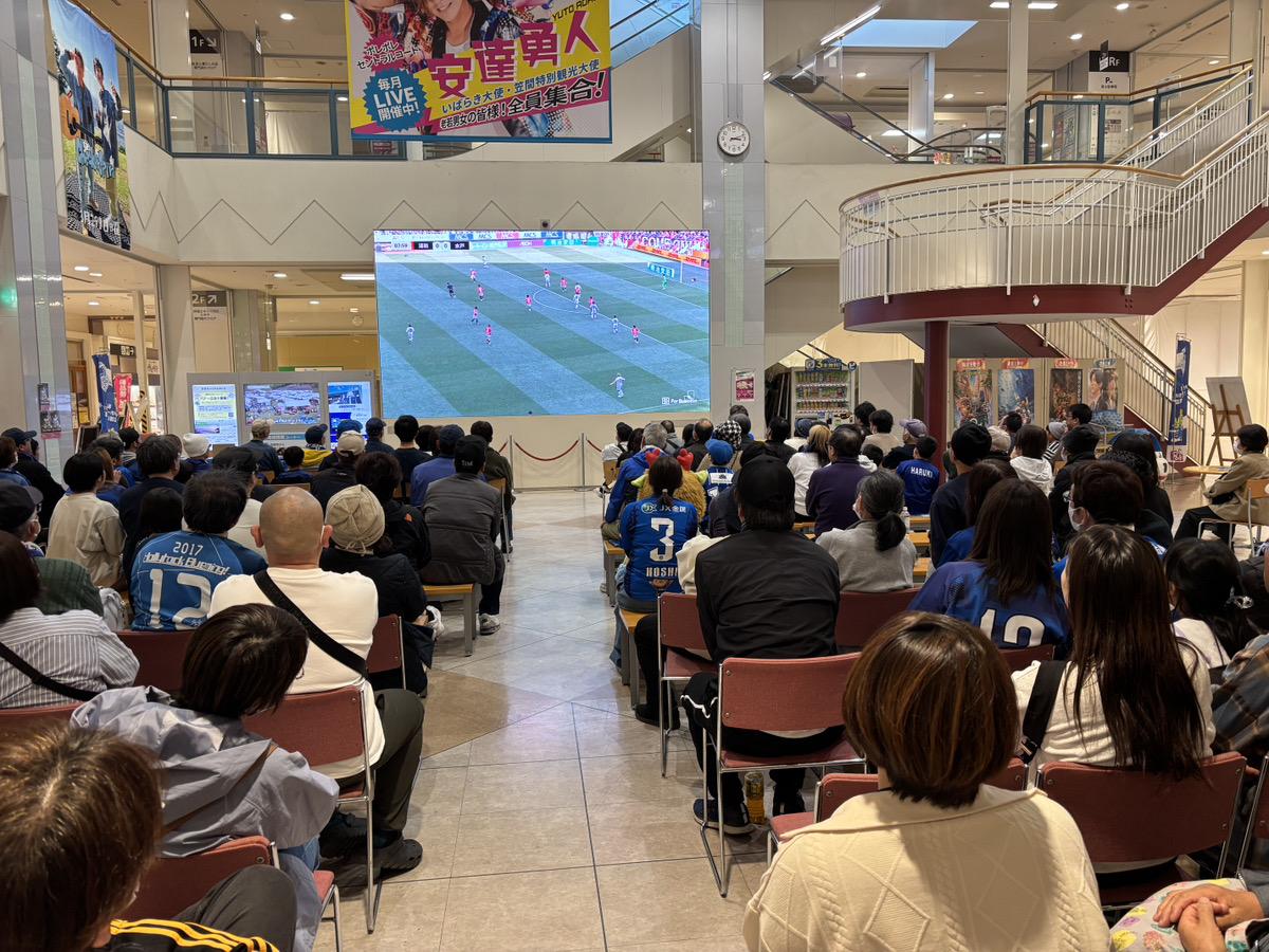 サッカーJ1の水戸ホーリーホックと鹿島アントラーズが4月4日にケーズデンキスタジアム水戸(水戸市小吹町)で対戦するのに合わせ、笠間ショッピングセンター「ポレポレシティ」1階セントラルコート(笠間市赤坂)でパブリックビューイング(PV)が開かれる。