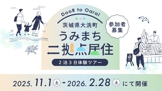 大洗町(企画運営:一般社団法人Local Quest Lab)は、今住んでいる地域ともう一つ別の地域に暮らしを持つ「二拠点居住」の体験ツアーを2025年11月~2026年2月までの期間で開催します。開催にあたり、都市圏等に住み二拠点居住に興味がある方や海のあるまちで暮らしたい方など、計4組の参加者を募集します。