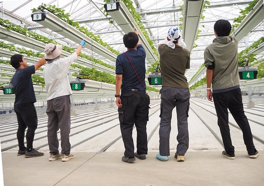 日本の農業従事者の平均年齢が69.2歳※と高齢化が進む中、ファーマ村いちご農園では平均年齢28.2歳と、若手人材を企業のビジネスパーソンとして雇用しています。スマート農業技術の導入により、経験に頼らないデータに基づいた栽培管理が可能となり、農業を“未来ある仕事”へ進化させています。