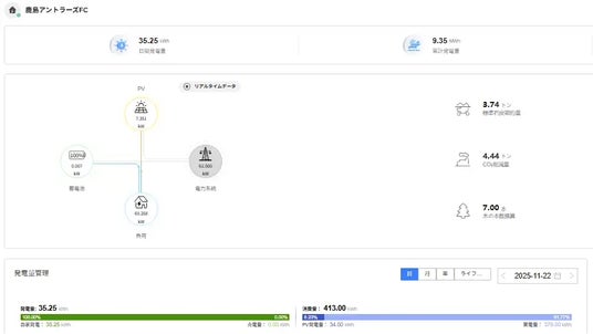 鹿島アントラーズでは、太陽光パネルと蓄電池の導入と併せ、クラブハウスにおける電力の「見える化」システムを実現しました。