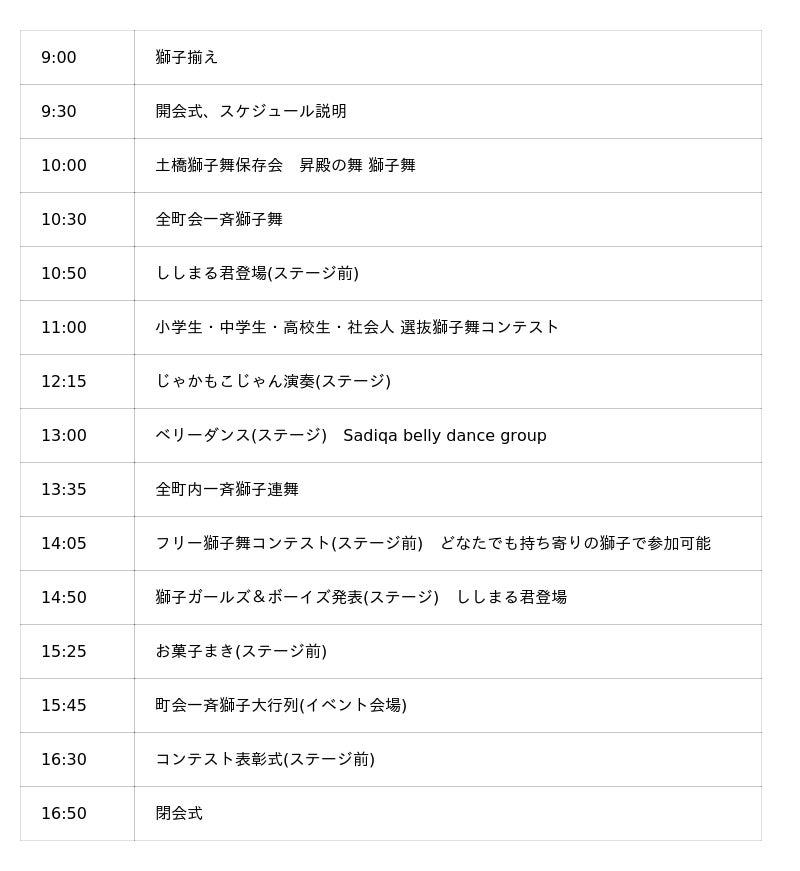 小学生・中学生・高校生・社会人の選抜獅子舞コンテストに加え、誰でも参加できるフリー獅子舞コンテストも開催されます。地域の伝統を未来へつなぐとともに、世代を超えて獅子舞文化に親しめる内容となっています。フリー獅子舞は持ち寄りの獅子で参加可能で、受付は当日9:30~10:00に本部前で行われます。