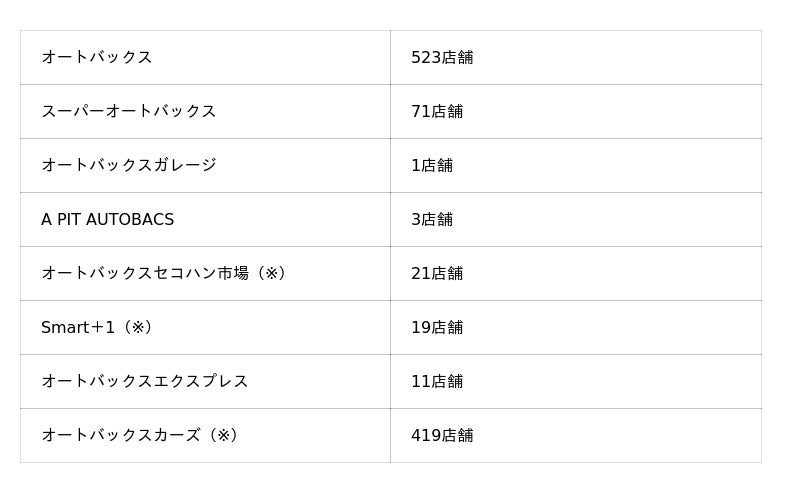 ご参考:オートバックスグループ国内店舗数 計1,068店舗