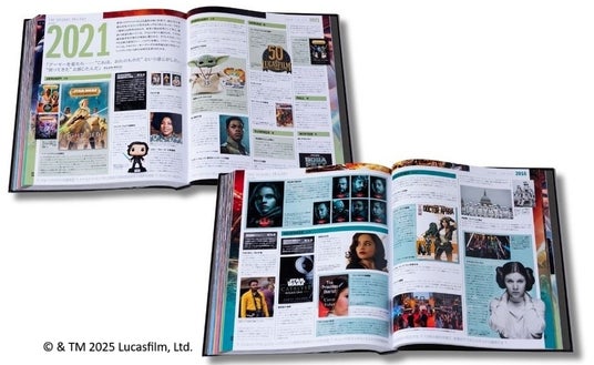 さらに、本書は『スター・ウォーズ』の映画が公開されていない時期の出来事も詳細に網羅しています。ひとつのストーリーラインに沿った拡張世界と呼ばれるスピンオフ物語や小説、『スター・ウォーズ』に影響を与えた、あるいは影響を受けたコミックや音楽、映画ポスター。そして現在も拡大を続けるマーチャンダイジングまで、読み応え抜群の内容です。