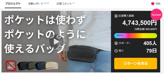 【初日450万円超え】財布もいらない「まるでポケットのようなバッグ」が進化して登場。最新作はRFID&新色3カラーが追加