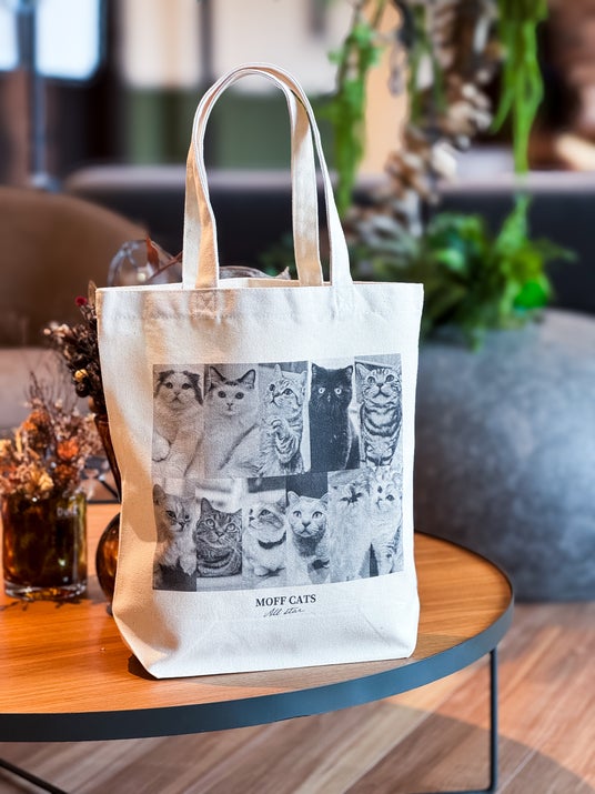 【1. オリジナルトートバッグ】「MOFFネコ総選挙(2025年開催)」でMOFF全34各店舗の頂点に輝いたネコたちが勢ぞろい!