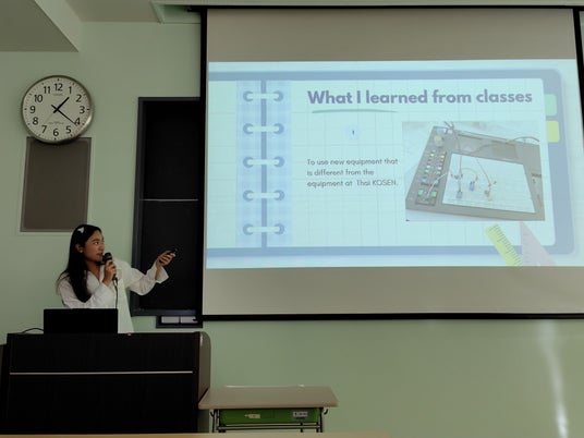 最終日の成果報告会では、英語によるプレゼンテーションで研修の成果を発表。「日本の高専生の学ぶ姿勢やチームワークに刺激を受けた」「将来は日本とタイをつなぐエンジニアになりたい」といった感想が寄せられました。