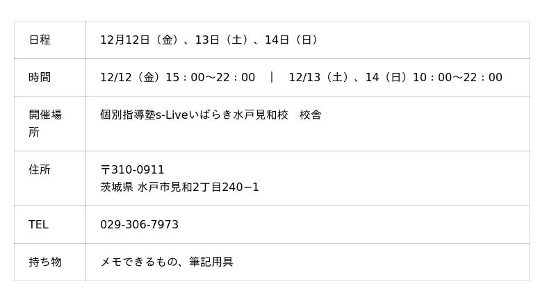 個別指導塾s-Liveいばらき水戸見和校 開校前説明会の詳細