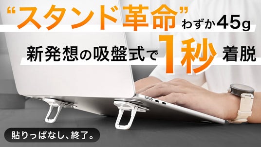 プロジェクト名: 着脱式なのに驚きの安定感!使う時だけ貼り付ける、新発想の吸盤PCスタンド「かるピタ」