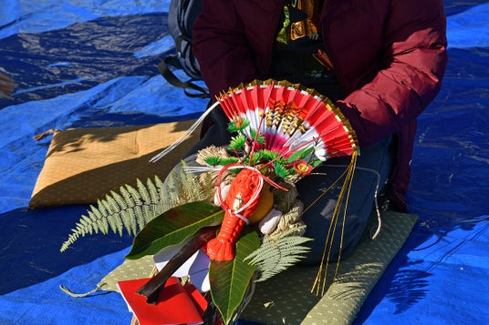 干支の巨大地上絵 仕上げ作業中(撮影日:2025年12月7日)
