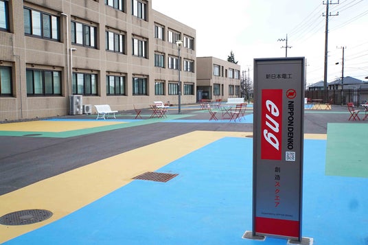 新日本電工eng創造スクエアは、本校の7号館北側に新たに整備された屋外広場です。学生が集まり、交流し、学生企画やイベントなどに活用される場として整備しています。名称に含まれる「eng(えんじ)」は、engineering(工学)および engineer(技術者)を表すとともに、本校のスクールカラーである「えんじ色」にも通じています。