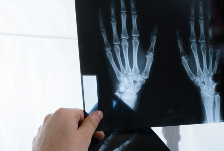 骨パズルに挑戦し、正しい位置でレントゲン風写真を撮影しよう!