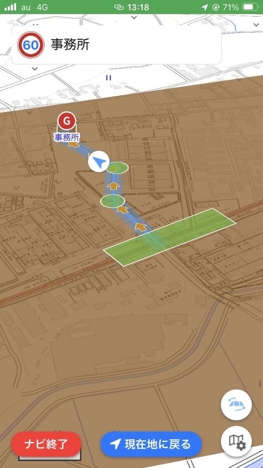 現場で作成している案内図や仮設計画図のオリジナルマップを国土地理院の地図に重ねて、ルートを設定します。オリジナルマップを活用し、工事中の道路、仮設道路、山間部・造成地、広大な工事構内など、市販ナビでは案内できないエリアでの誘導を可能にします。本アプリを使えば、新規入場者でも迷わず現場に到着できます。