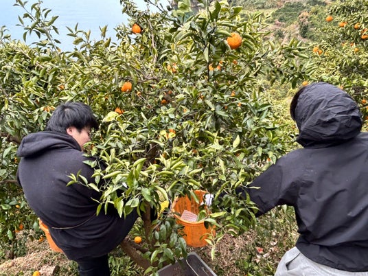 愛媛県の柑橘産地無茶々園では、崖から落ちそうな急斜面の畑で収穫体験をしました。学生生活で農業を体験する特別な機会となり、地域の人たちの温かさに触れ感動していました。看護師を目指す学生は「自然に触れる機会が少ない中、農産物が育てられ、人の手に渡る流通の過程を学べたのは貴重な経験です」と感想を寄せ、日頃の勉強ではできない体験が学生たちを大きく成長させました。